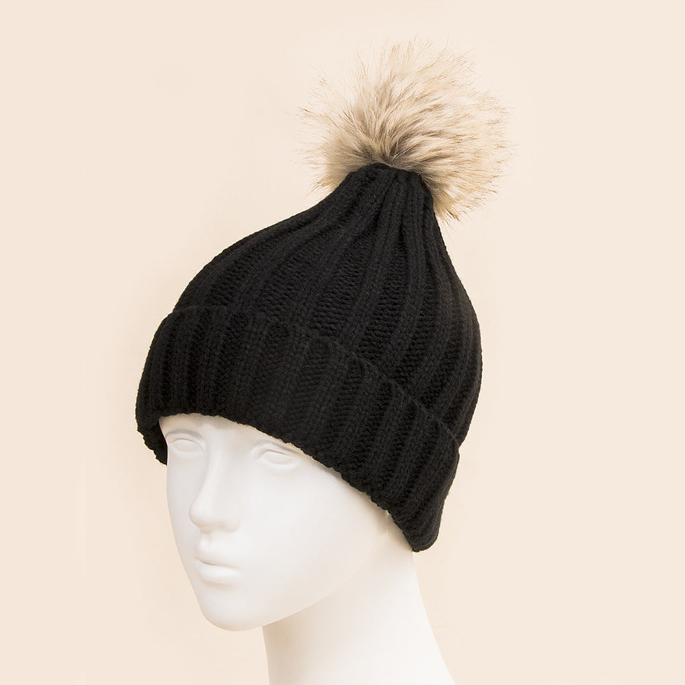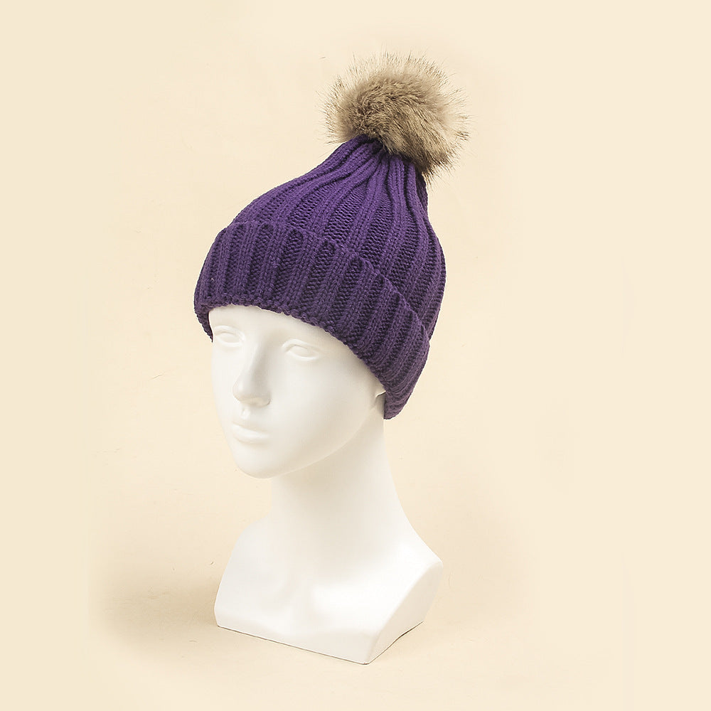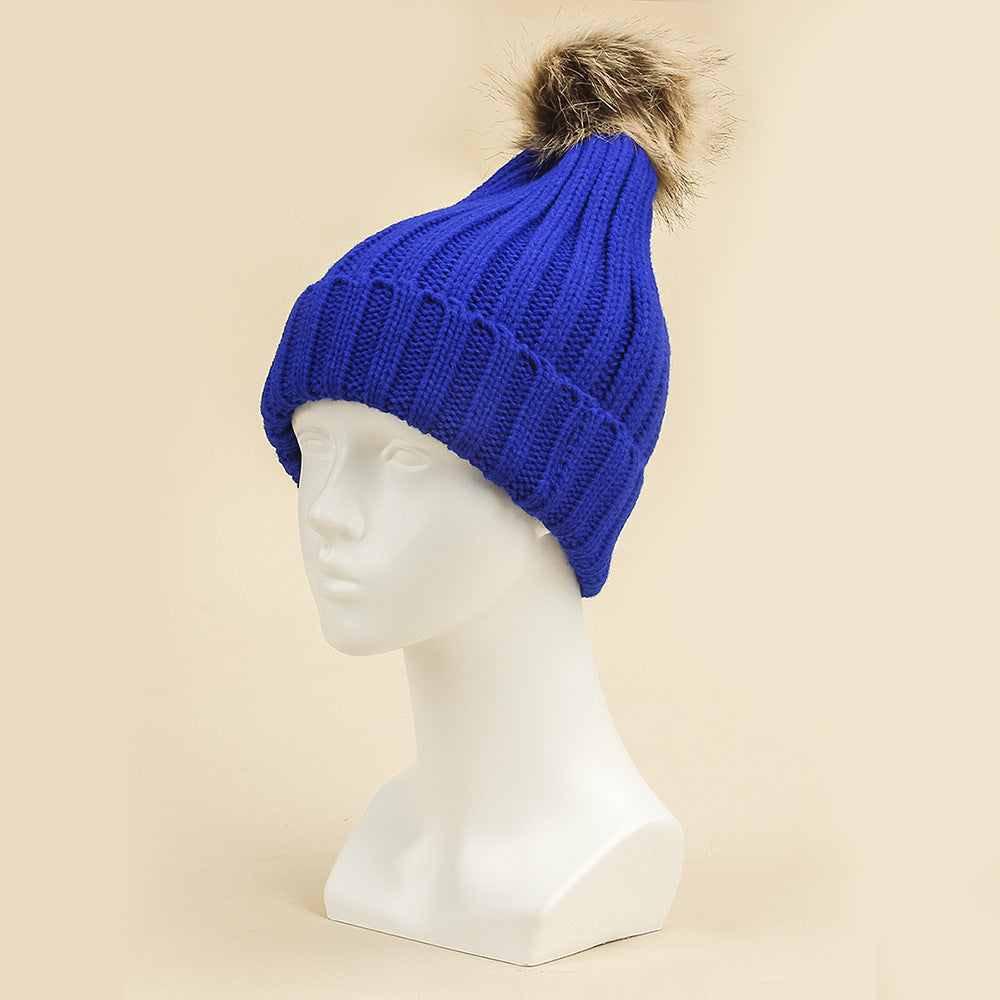 Women's Thermal Fur Ball Fashionable Knitted Pullover Klein Blue Woolen Cap