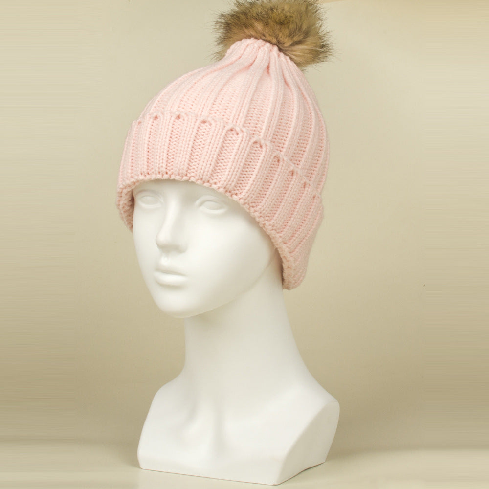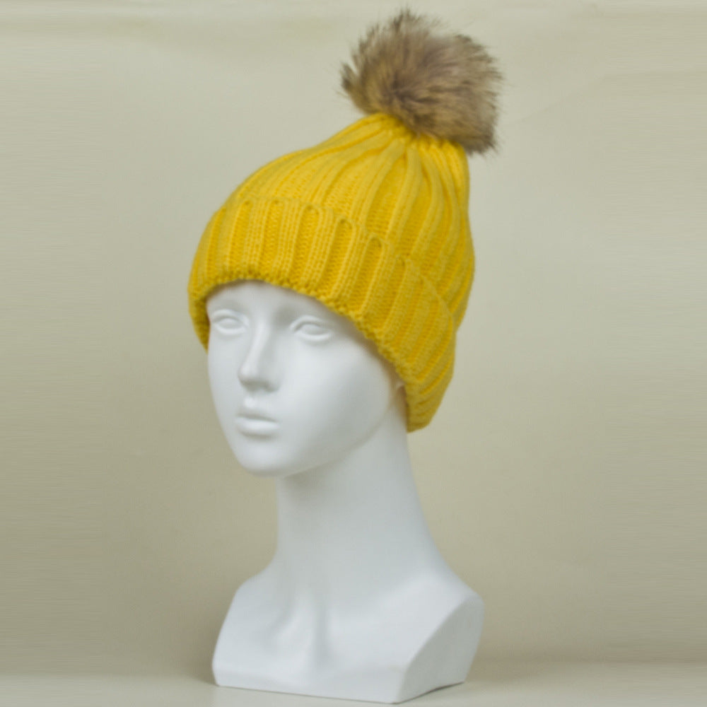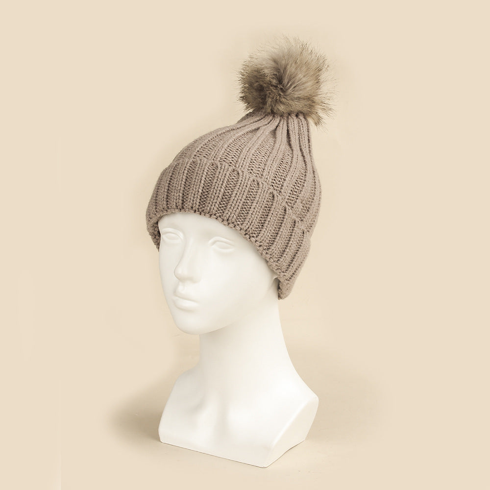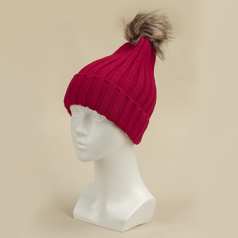 Women's Thermal Fur Ball Fashionable Knitted Pullover Klein Blue Woolen Cap